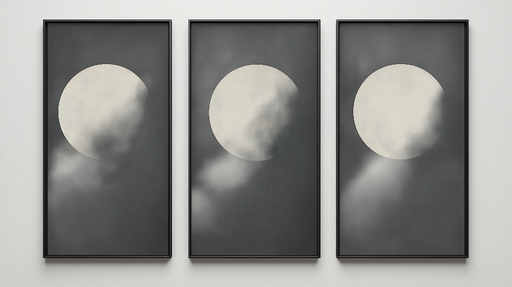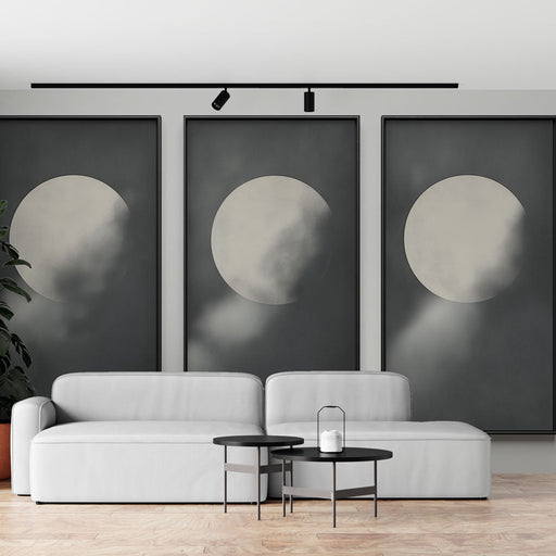 Prikaži sve detaljeMural Wallpaper tableau imitation | Lune abstraite en nuances de gris avec nuages