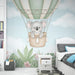 Ovaj očaravajući mural tapeta prikazuje ljupkog koalu koji lebdi u vintage balonu na vrući zrak, okružen mekim oblacima i prekrasnom kompozicijom tropskog lišća. Umirujuće pastelne nijanse i nježni detalji stvaraju toplu i ugodnu atmosferu, savršenu za dječju sobu ili sobu za igru.