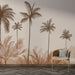 Ova tapeta ističe prekrasan dizajn stiliziranih palmi, s nježnim linijama i toplim tonovima koji evociraju umirujuću tropsku atmosferu. Siluete palmi, suptilno preklapane na nježnoj pastelnoj pozadini, donose osjećaj mira i bijega u unutarnje prostore.