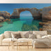 Ova muralna tapeta evocira velicanstvenu prirodnu scenu, prikazujuci stjenoviti luk na rubu kristalno cistog mora. Vibrantne i umirujuce boje, koje variraju od tirkiznih nijansi do dubokih plavih tonova, donose mirnu i opustajucu atmosferu, idealnu za bilo koju sobu.