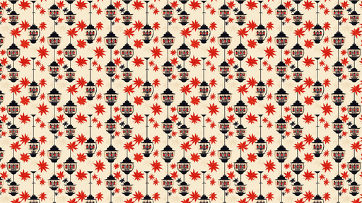 WonderMuralOva tapeta prikazuje zanosni uzorak koji kombinira stilizirane svjetiljke i prekrasne crvene javorove listove na svijetloj pozadini. Svjetiljke, sa...