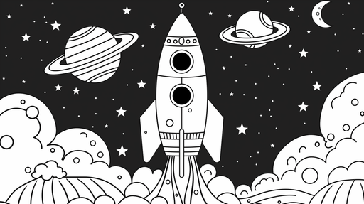 Prikaži sve detaljeMural Wallpaper bojanka | Raketa u crno-bijelom u svemiru