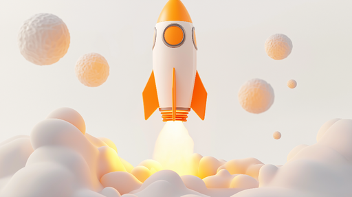 WonderMuralOva muralna tapeta prikazuje modernu raketu s glatkim linijama i svijetlim narančastim detaljima, veličanstveno se uzdižući iznad mekih oblaka i or...