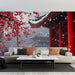 Mural Wallpaper Azijski krajolik | Trešnjin cvijet u snijegu u tradicionalnom okruženju