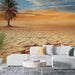Ova muralna tapeta izaziva impresivan pustinjski krajolik, s usamljenom palmom koja ponosno stoji na tlu ispucanom od vrućine. Nijanse zlata i bež stapaju se stvarajući toplu i umirujuću atmosferu, savršenu za unošenje daška egzotike u vaš interijer.