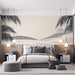 Tapeta bež tropski krajolik | Umirujući dizajn s palmama i nježnim dinama