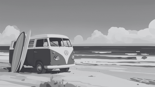 Prikaži sve detaljeTapete surf | Kombi i pastelno siva plaža