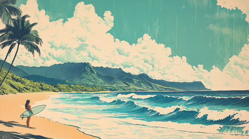 FluxGraphicOva tapeta hvata opuštajuću esenciju egzotičnih plaža sa palmama koje nježno ljuljaju na vjetru i surf daskama koje pozivaju na avanturu. Pastelne ...