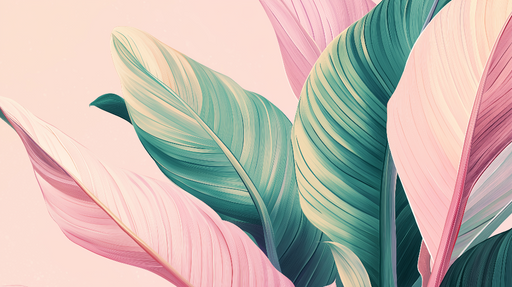 WonderMuralOva zidna tapeta sadrži elegantan uzorak pastelnih listova, gdje se nijanse ružičaste, plave i bijele isprepliću kako bi stvorile umirujuću i nježn...