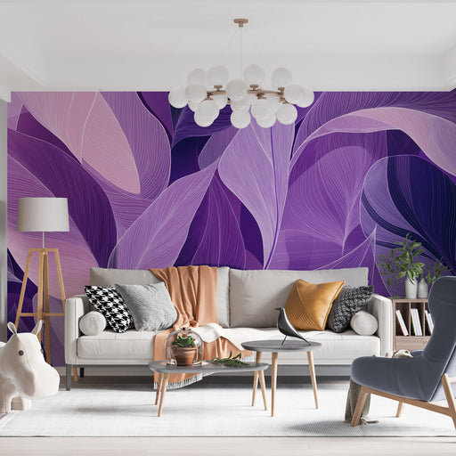 WonderMuralOva zavodljiva tapeta prikazuje dizajn nježnih listova u nijansama ljubičaste i ružičaste. Fluidne i grafičke linije stvaraju vizualnu teksturu koj...