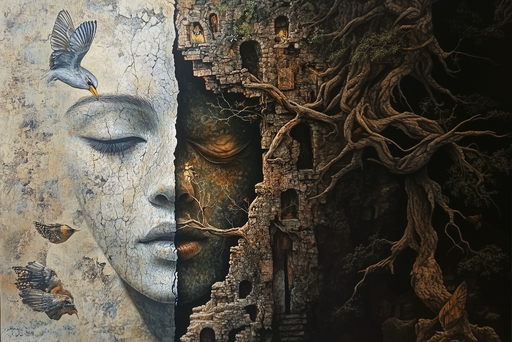 Prikaži sve detaljeTapeta surrealist | Fuzija prirode i lica
