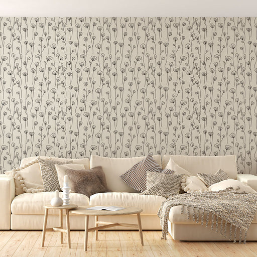 WonderMuralNaša muralna tapeta prikazuje rafinirani uzorak cvjetova crtežom tintom, nježno raspoređenih preko neutralne pozadine. Ova umjetnička kompozicija s...
