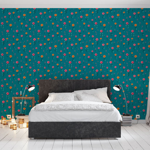 Prikaži sve detaljeFototapet cvjetni tirkizni | Šareni uzorak cvijeta na tirkiznoj pozadini