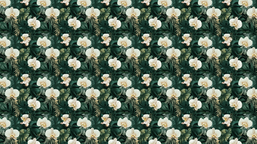 WonderMuralNaša tapeta prikazuje prekrasan uzorak bijelih orhideja nježno smještenih na pozadini bujnog zelene lisnatosti. Duboke zelene nijanse stvaraju trop...