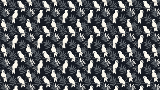 Prikaži sve detaljeTapete perroquet | Perroquets blancs sur fond noir avec feuillage délicat