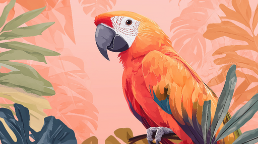 WonderMuralNaša tapeta sadrži živopisnu papigu s narančastim i crvenim perjem, okruženu bujnim tropskim lišćem. Mekana i pastelna pozadina stvara toplu i ugod...