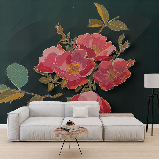 Prikaži sve detaljeTapeta cvjetni zid | Crvene ruže na zelenoj pozadini