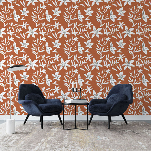 WonderMuralNaša tapeta prikazuje šarmantan uzorak cvijeća i lišća nježno ilustriran na toplom i ugodnom terakota pozadini. Kombinacija prirodnih tonova i supt...
