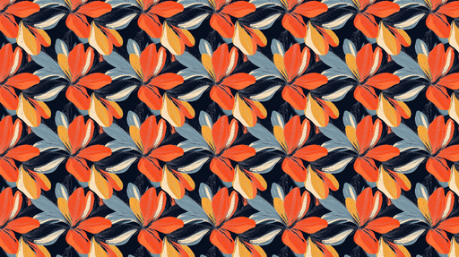 WonderMuralNaš ekskluzivni Tapete prikazuje prekrasan uzorak svijetlih cvjetova u nijansama crvene i narančaste, obogaćen dodirima plave i bež boje na tamnoj ...
