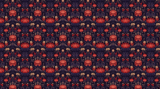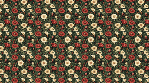 Prikaži sve detaljeTapete cvjetni vintage | Crveni i kremasti cvjetni uzorci na tamnoj pozadini