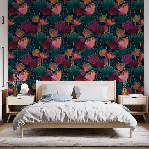 WonderMuralNaša originalna Tapeta ima zavodljiv cvjetni uzorak s toplo obojenim cvijećem koje se proteže od crvene do ružičaste, osvijetljeno protiv umirujuće...