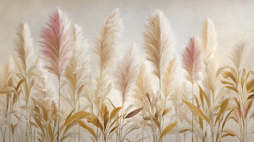 WonderMuralOva tapeta otkriva prekrasan uzorak pampas trave u nježnim nijansama, od svijetlo bež do blijedo roze, na suptilnoj pozadini s plavkastim nijansama...