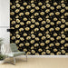 Ova tapeta ističe se svojim zanosnim uzorkom zlatnih cvjetova ukrašenih intenzivnom crnom pozadinom. Bogatstvo detalja i nijanse svakog cvijeta stvaraju ambijent koji je istovremeno šik i dramatičan, savršen za unaprjeđenje bilo kojeg unutrašnjeg prostora.