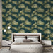 Ova tapeta prikazuje elegantan uzorak zlatnih palmi koje se ističu na tamnozelenoj pozadini, stvarajući luksuznu i tropsku atmosferu. Delikatni detalji listova donose dodir sofisticiranosti dok bude svježinu prirode.