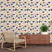 Ova premijerna tapeta prikazuje igrivi uzorak ginko listova u nijansama plave, narančaste i žute boje, nudeći moderni i osvježavajući šarm. Bijela pozadina ističe žive boje, stvarajući dinamičan i radostan učinak idealan za poboljšanje bilo koje sobe.