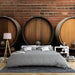 Tapeta vinska bačva | Tople drvene bačve na pozadini od crvene cigle