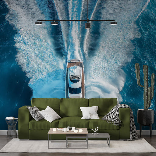 Ova muralna tapeta prikazuje usamljeni jedrenjak mirno plovi kroz mirne vode, stvarajući mirnu i kontemplativnu atmosferu. Nježne nijanse plave i bež suptilno se stapaju kako bi dočarale daleke horizonte i trenutke sanjarenja.