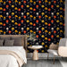 Tapeta s cvjetnim uzorkom u crnoj boji | Uzorak crvenih, žutih i bijelih cvjetova na crnoj podlozi