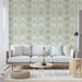 Ova tapeta ima šarmantni motiv stiliziranih cvjetova u mekoj harmoniji, s nijansama mint zelene , bež i bijele . Cvjetovi, prekrasno raspoređeni, donose dodir svježine i lakoće u bilo koji prostor. Svijetla pozadina ističe jednostavnost i eleganciju uzoraka, stvarajući umirujuću atmosferu.