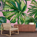 Odaberite naš tropski mural tapet s akvarel zelenim lišćem na ružičastoj pozadini za dodir egzotične svježine u vašem interijeru. Veliki akvarelom nacrtani listovi stvaraju živopisan i prirodan učinak savršen za moderni dnevni boravak ili opuštajuću spavaću sobu.
