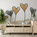 Ova tapeta ima moderni i razigrani dizajn s stiliziranim srcima koja stoje na nježnim stabljikama, stvarajući toplu i ugodnu atmosferu. Nijanse crne i zlatne donose suptilnu eleganciju, dok mekana tekstura pozadine pojačava prirodni karakter uzorka.