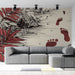 Ova jedinstvena tapeta prikazuje zanosni uzorak crvenih stopala na prirodnoj stazi, okružen delikatno ilustriranim tropskim lišćem. Otisci stopala čine pozivnicu za istraživanje, dodajući dodir avanture vašem interijeru. Neutralna pozadina ističe detalje lišća dok pruža mirnu atmosferu.