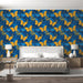 Fototapet leptiri | Žuti uzorak leptira na plavoj pozadini lišća