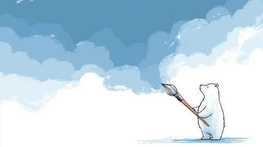 Teljes részletek megtekintéseFotótapé festő medve | Egy kreatív fehér medve fest kék felhőket