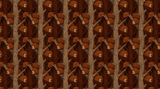 WonderMuralA gyönyörű fotó tapétánk egyedi mintázatot mutat medvefejekkel, melyeket stilizált fa törzsek vesznek körül, meleg és természetes hangulatot terem...
