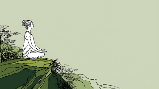 WonderMuralEz a fekete-fehér illusztráció egy nyugodt meditációs jelenetet ábrázol, ahol egy magányos sziluett ül a hullámzó dombok tetején, szemben egy nagy ...