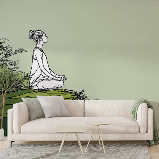 WonderMuralEz a fotó tapéta egy pillanatnyi nyugalmat idéz meg finom ábrázolásával egy meditáló sziluett természetes környezetben. A zöld árnyalatok nyugtató ...
