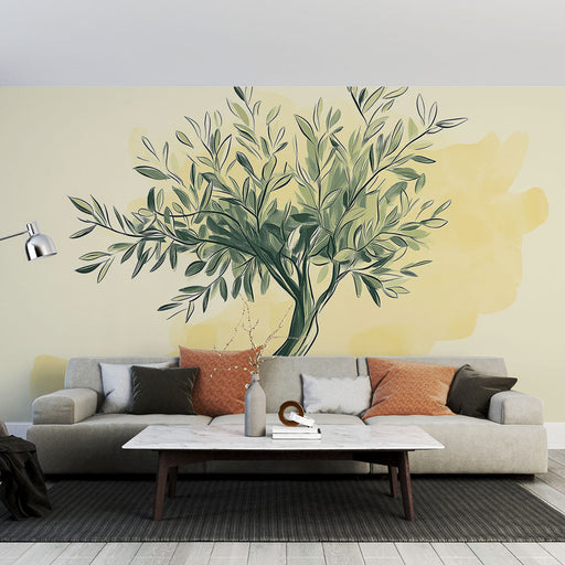 WonderMuralEz a falfestmény tapéta egy gyönyörű olajfát ábrázoló mintát tartalmaz élénk sárga olívabogyókkal, amelyeket különböző zöld levelek vesznek körül. ...