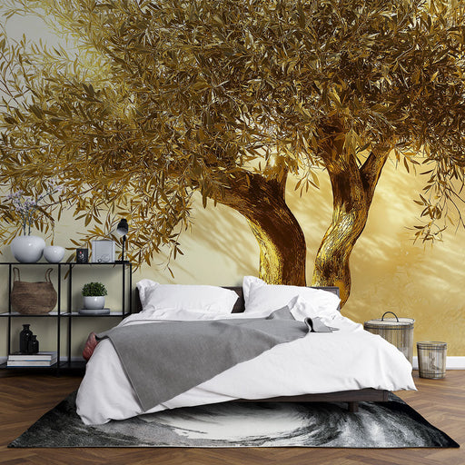 WonderMuralEz a falfestmény finoman illusztrált olajfát mutat be arany árnyalatokban, meleg és barátságos légkört teremtve. A lombozat és a törzs részletei mű...