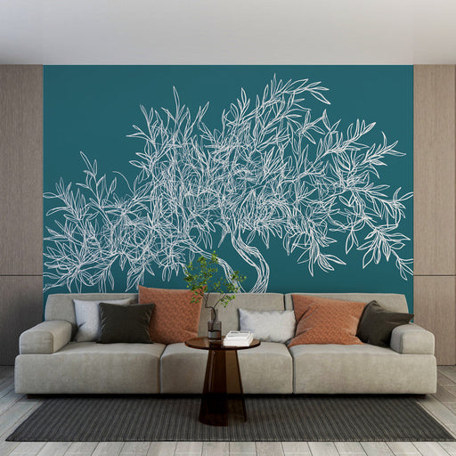 WonderMuralEz a falfestmény tapéta egy stilizált olajfát ábrázol, tiszta vonalakkal rajzolva, nyugtató türkiz háttéren. A rajz fehérsége és a háttér mélysége ...