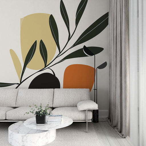 Teljes részletek megtekintéseFalfestmény tapéta olajfa | Stilizált levelek és organikus formák