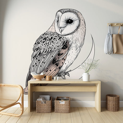 WonderMuralA mi fotótapetunk gyönyörű mintázatot kínál finoman illusztrált baglyokkal, ágakon ülve, puha bézs háttérrel. Minden madarat gondosan kidolgozták f...