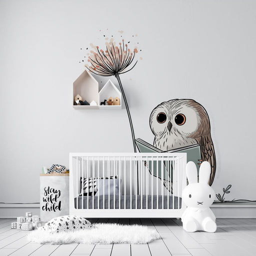 WonderMuralEz a elbűvölő fotó tapéta egy csintalan baglyot ábrázol, aki egy könyvet tart a kezében, egy hatalmas elegáns virág hátterében. A lágy, pasztell ár...