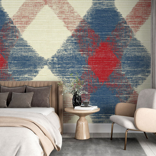 WonderMuralEz a lenyűgöző tapéta egy Ikat stílus által inspirált mintát mutat be, vörös és kék árnyalatokkal. A geometriai formák finoman szőttnek tűnnek, ami...