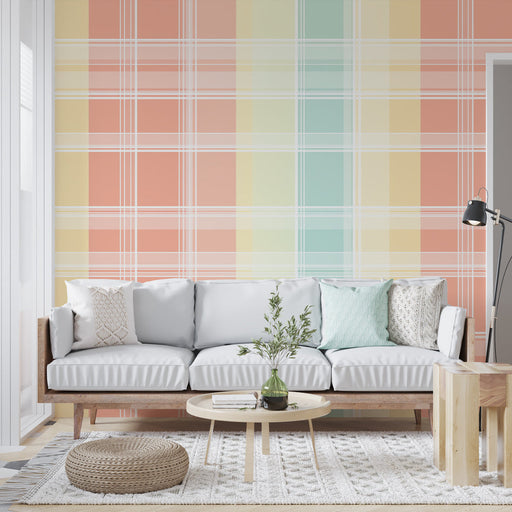 WonderMuralEz a kockás tapéta puha pasztell színek kombinációját tartalmazza, beleértve a mentazöldet, a halványsárgát és a lazac rózsaszínt, megteremtve egy ...