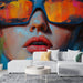 Falfestmény stílusú portré | Női arc tükröződő szemüveggel és élénk színekkel
